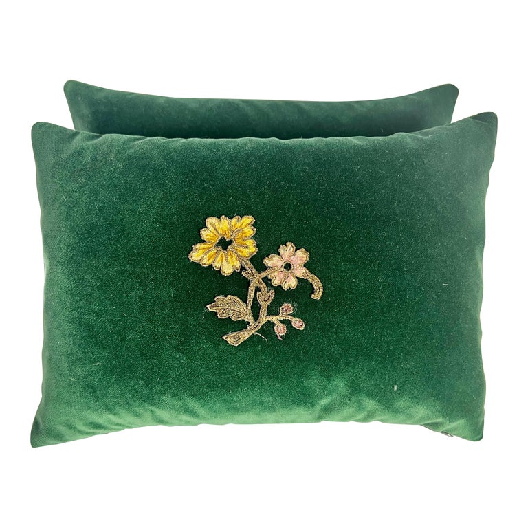 Pair Of Green Velvet Knife Edge Pillow Cases 22 X 22 At 1stdibs Green Velvet Pillows Knife Edge Pillows Knife Edge Cushion
