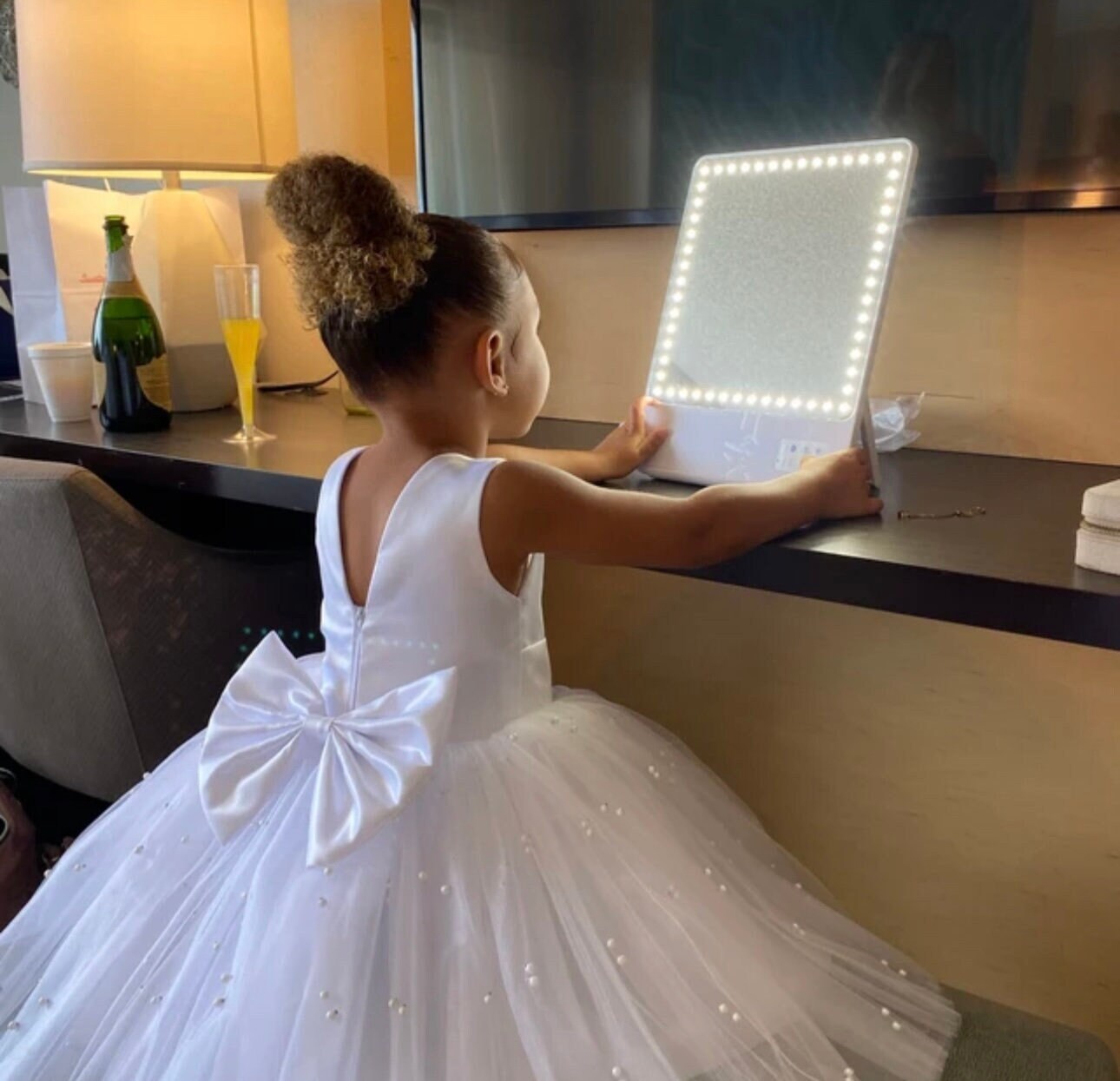 White 4 Layer Pearl Tulle V Back Knee Length Wedding Flower Girl Communion Baptism Summer Easter Birthday Girl Princess Trendy Classic Dress Etsy